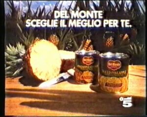 L’emblematica figura dell’ “Uomo del Monte” in una delle poche occasioni in cui dice di no ai coltivatori: le pesche destinate a diventare pesche sciroppate Del Monte non sono ancora mature a sufficienza. Bisognerà aspettare fino al giorno successivo per sentire il tanto atteso “L’Uomo del Monte ha detto sì!”.