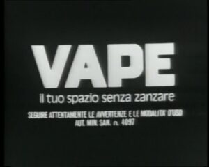 L’elettroemanatore con piastrine Vape, uno dei più noti apparecchi utilizzati per contrastare le zanzare, esisteva già nei primi anni 80. In questo spot del 1982, in assenza della suggestiva figura del cono volante che avrebbe colpito l’immaginario collettivo, era un onomatopeico “zzz” animato che volteggiava per lo schermo a rappresentare le zanzare e il fastidio che provocano.